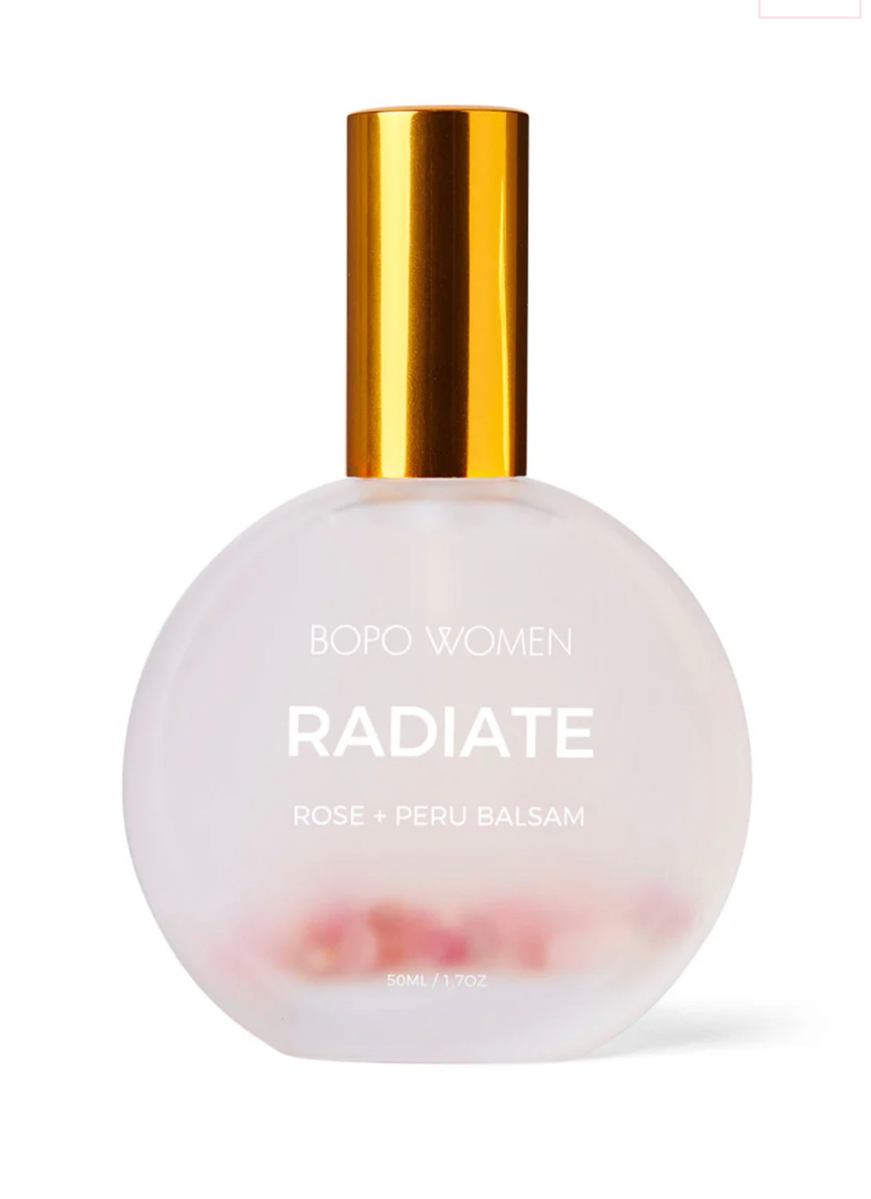 Let sparks fly and indulge in the sweet and spicy scent of Radiate. Starring passionate florals, delicate rose damascena adds sweet pink notes with long-lasting depth, while fruity and flowery ylang-ylang softens the balsamic woodiness of sandalwood. Peppery sharp ginger adds a warm fiery element and smoky Peru balsam a touch of vanilla, wood and cinnamon. Intense and soft, this versatile day or night scent will transport you to candlelit moments in front of an open fire, spontaneous adventures and romantic nights. The Radiate Body Mist embodies the fire sign element (Aries, Leo, Sagittarius) and comes with a beautiful gold foil Fire Woman Tarot Card.