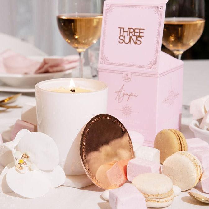 Meet Agapi' our Candle of Love. It is more than just a fragrance, it's a supportive companion that helps you embrace all kinds of love. Infused with Rose Quartz crystals, this scent blends the creamy sweetness of Gelato and Caramel Frost with the milky tones of Crème Brule, all while the aroma of Toasted Coconut fills the air. As you breathe in the delightful fragrance, Agapi' will help you release negative emotions and open your heart to self-love, familial love, friendship love, love for humanity, and romantic love.