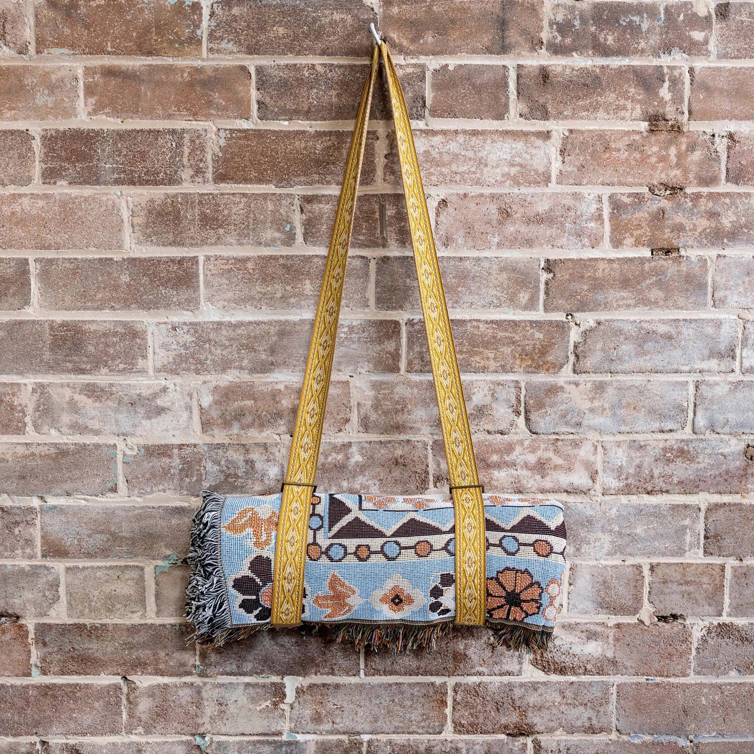 These woven tapestry blankets are so versatile! Use them as a picnic rug or beach blanket outdoors...as a throw or wall tapestry, indoors. Get whisked away to exotic destinations with this Persian-inspired design. Earthy tones of terracotta and brown with sky blue for the perfect spicy feel. Our 'PS I Love You' Collection with its oriental vibe, distinct tones and intricate detailing, will transport you to sun-filled dreamy places. It is a light-weight throw that is thoughtfully woven using a blend of cotton and recycled polyester (sourced from plastic bottles and waste diverted from landfill and our oceans) ... to create an intricate bold & structured design.